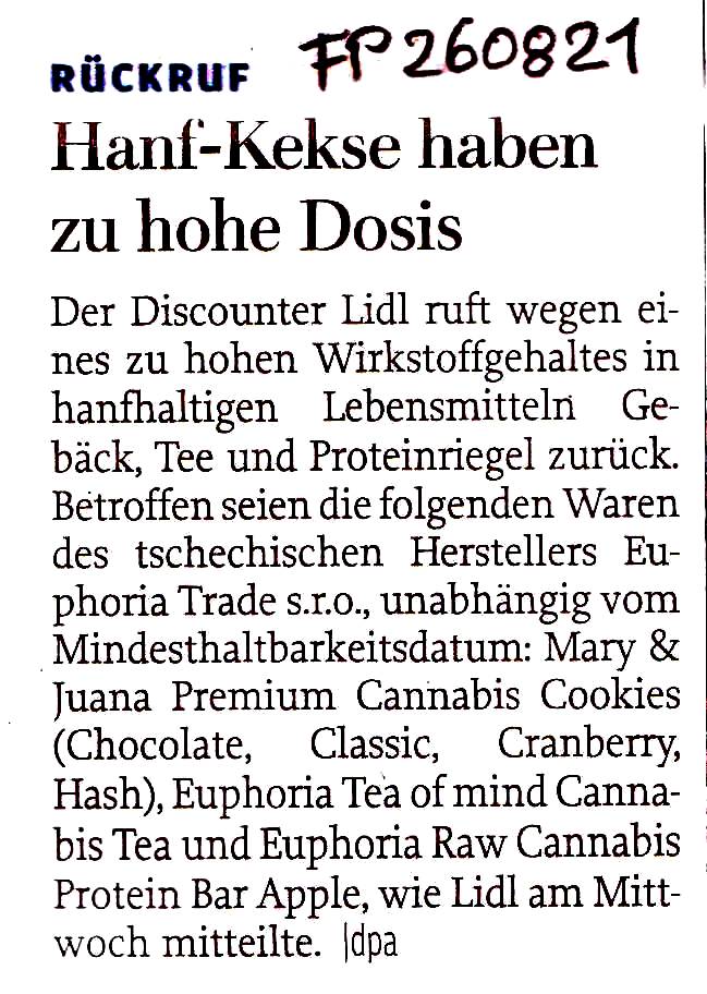 Es kann ja durchaus sein, daß bei den Einkaufsabteilungen der großen Einzelhandelskonzerne nicht jeder Artikel geprüft oder gar ausprobiert wird, bevor er in den Verkauf kommt. Aber wenn die Herstellerfirma von Hanfkeksen schon "Euphoria" heißt ...