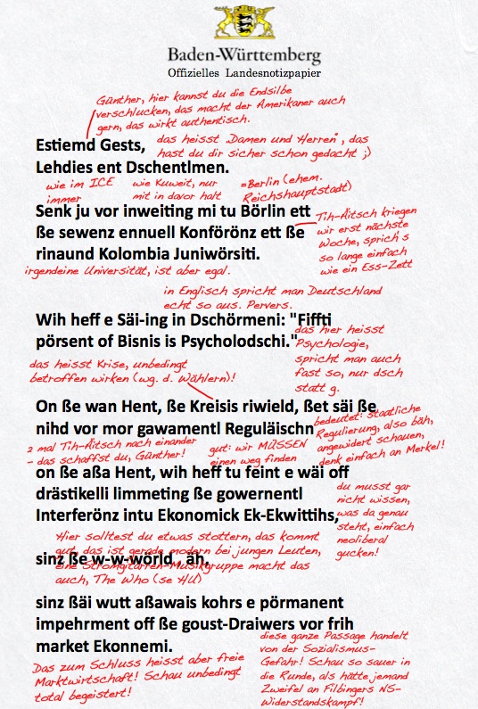 An seinem künftigen Arbeitsplatz in Brüssel wird der designierte EU-Kommissar Günther Oettinger Englischkenntnisse benötigen. Ein "YouTube"-Video offenbart nun die Fremdsprachen-Künste des Politikers aus Baden-Württemberg.www.spiegel.de