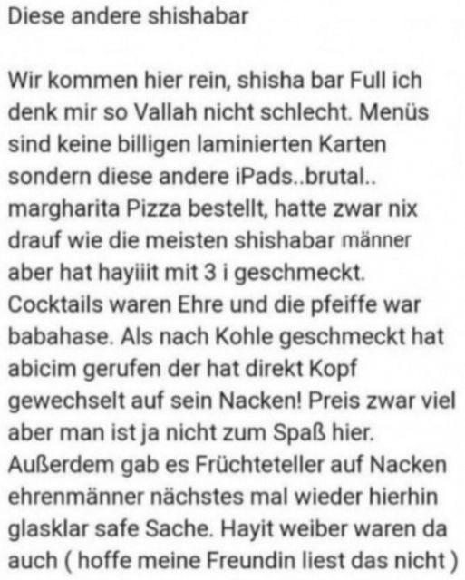 Eindrücke nach Besuch in einer neuen Shishabar auf dem Kiez (He Digga, sei nicht Alpha Kevin, bleib mal schön cremig)