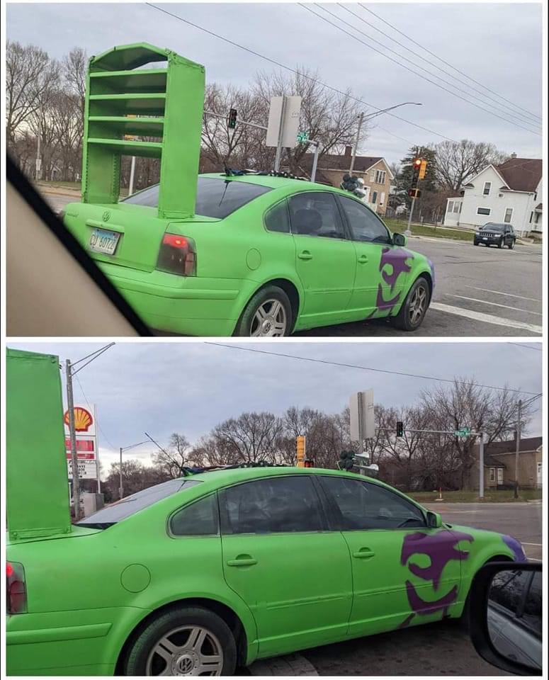 Das ist sicher einer dieser Bücherregale über die man seine alten Bücher verschenken kannGeil, ein Auto mit Bücherregal...