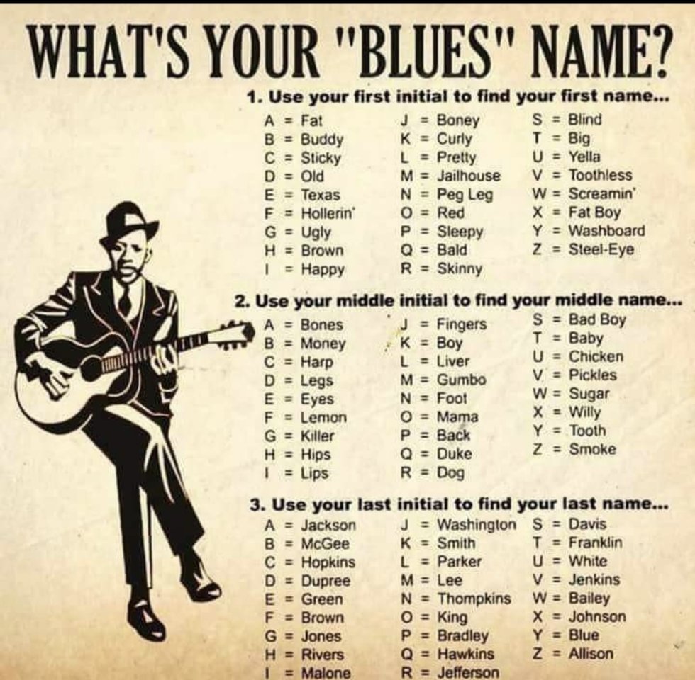 Nehme ich, in Ermangelung eines zweiten Vornamens, meinen Doppelnamen als 2. und 3. Initial: Jailhouse Baby Lee... na ja..