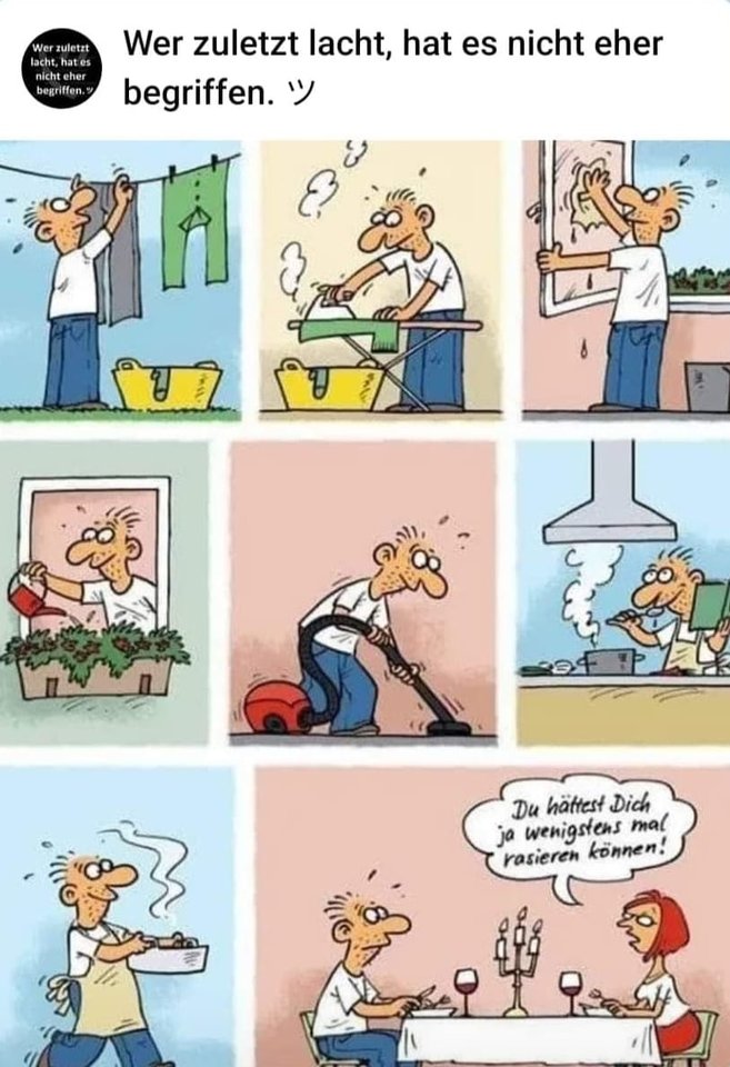 Dass sie sich das Kinn rasieren soll? Franggn …Kenn ich... Sag ich zu meiner Frau auch immer...![]()