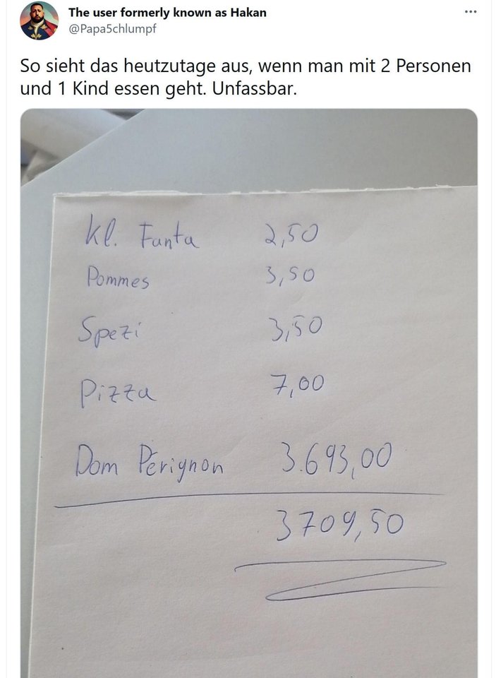 Frag einen Mann des Volkes, der sich da auskennt. Vielleicht Maggus Söder?In welchem Puff servieren die denn Pommes und Pizza?![]()