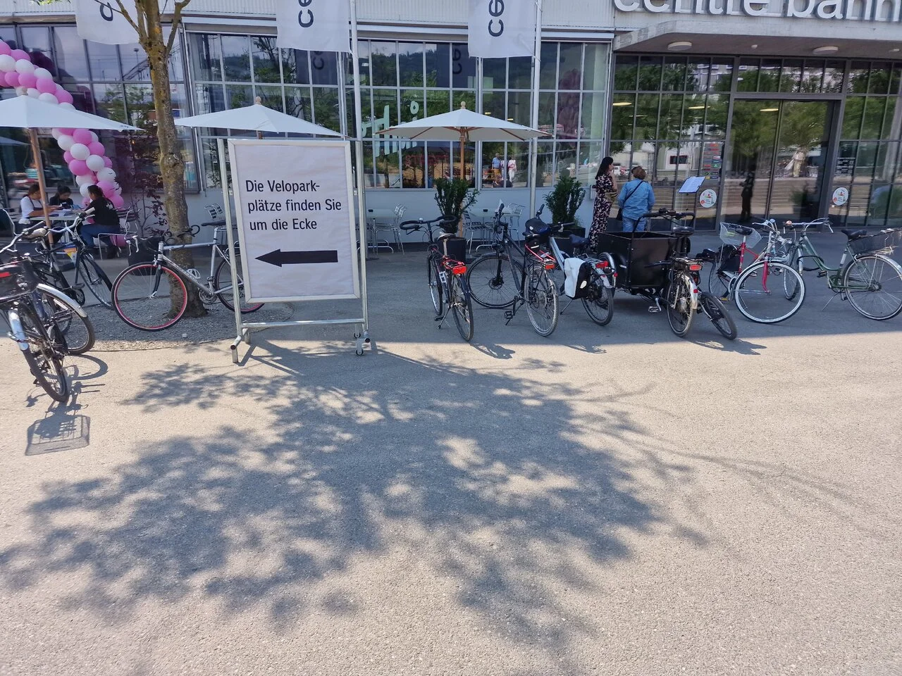 | Die Velopark- plätze finden Sie um die Ecke | Velo-Parkplätze links um die Ecke |