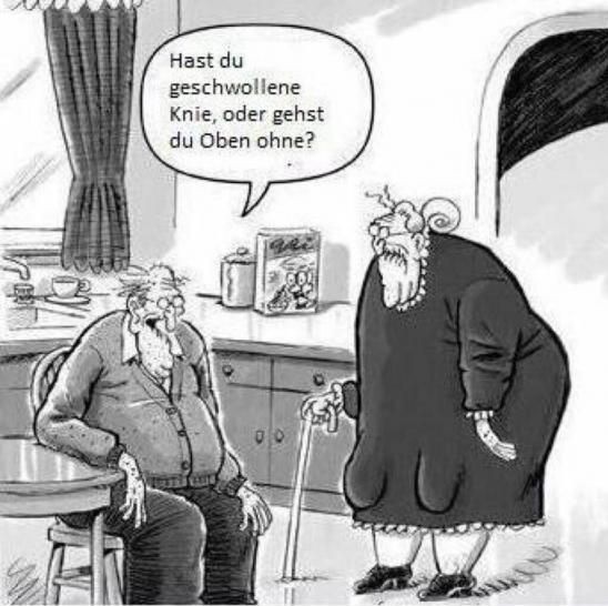 Natürlich werden wir alle mal alt und unansehnlich, das ist der Lauf der Dinge, aber warum sollte man keine Witze darüber machen?Wir werden alle mal alt. Schaut mal nach ob die Glocken nicht schon länger sind als das Seil. Entsinnt ihr euch noch an das Bild von dem Muschelsucher