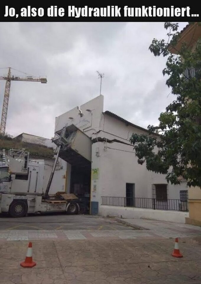 Beim Abkippen das Vordach hochgehoben aus der Verankerung. Alle haben auf den Kies gestarrt, keiner hat nach oben geschaut. Das Dach war ein Vierteljahr vorher neu gemacht worden für 10 Mille.Ist der LKW drangefahren oder hast du zu viel Kies aufs Vordach gepackt?