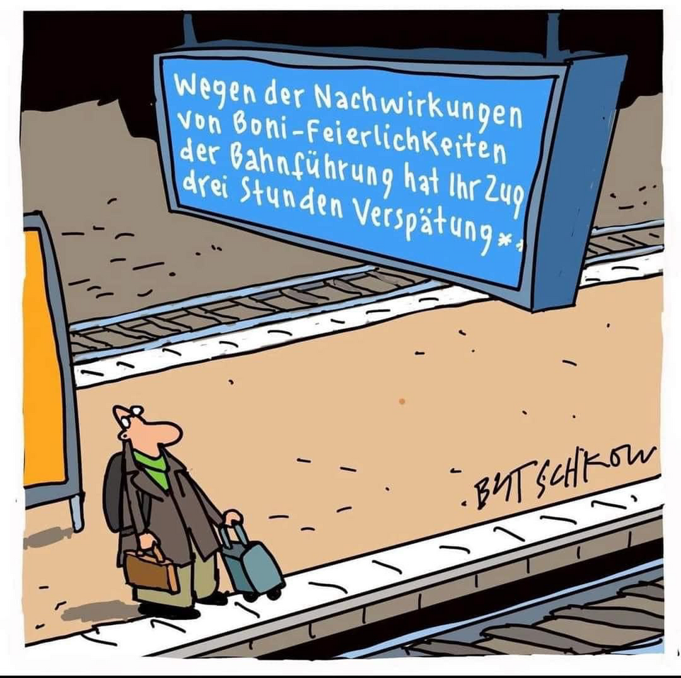 Aber nein, wie kommst Du nur darauf?Der Witz bezieht sich vermutlich auf dieses skandalöse Verhalten der Bahnchefs? https://www.tagesschau.de/investigativ/ndr-wdr/bahn-vorstand-bonus-100.html?utm_source=pocket-newtab-de-de