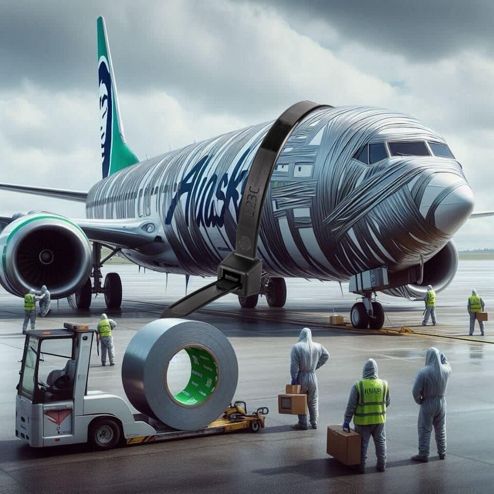 Ich würd da nicht einsteigen - ich seh keinen einzigen Kabelbinder. Das kann ja gar nicht halten."Chef, die Boeing 737 MAX kann wieder abheben. Ist jetzt alles fest...!"