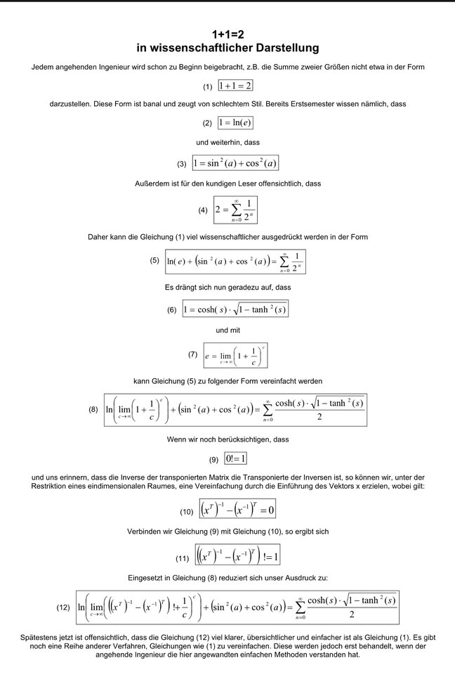 Da soll nochmal einer sagen, Mathematik sei im Leben nicht notwendig!Ui, das erinnert mich an eines meiner ersten Internet-Memes: