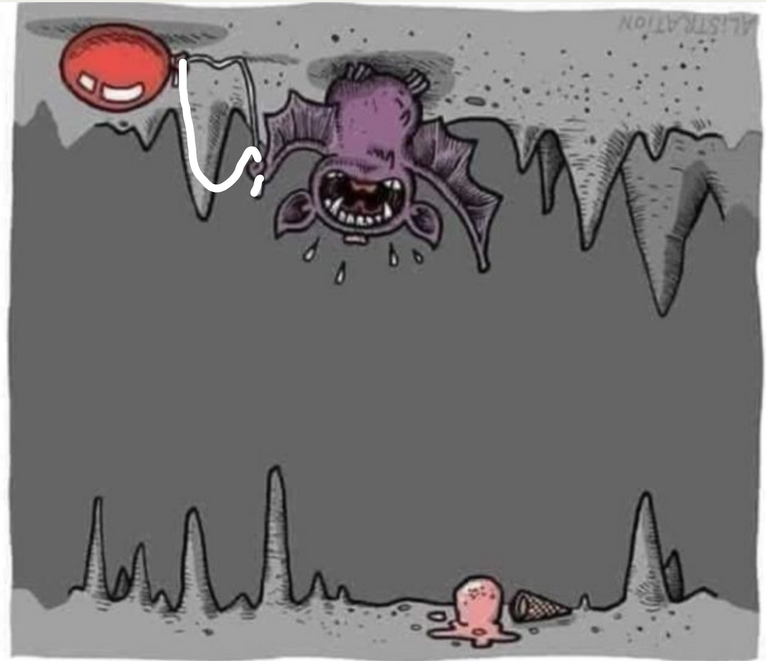 Ja, kommt, lasst uns einen Witz, in dem eine Fledermaus ein Eis verliert, und einen Ballon hält, physikalisch korrekt analysieren...![]()