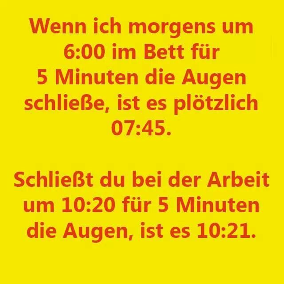 Ich schwöre, als ich auf der Arbeit mal die Augen um 10:20 für fünf Minuten zu gemacht habe, war es 10:15...