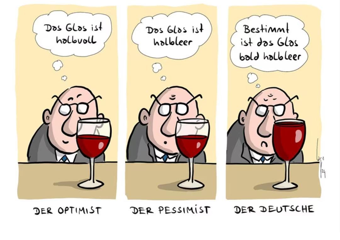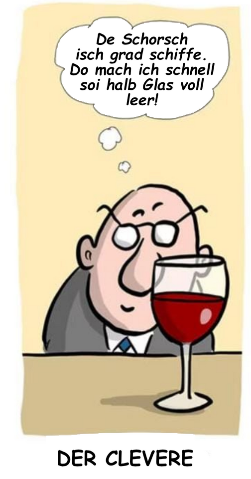 Also ich lasse ein Glas Wein niemals halbleer stehen.![]()