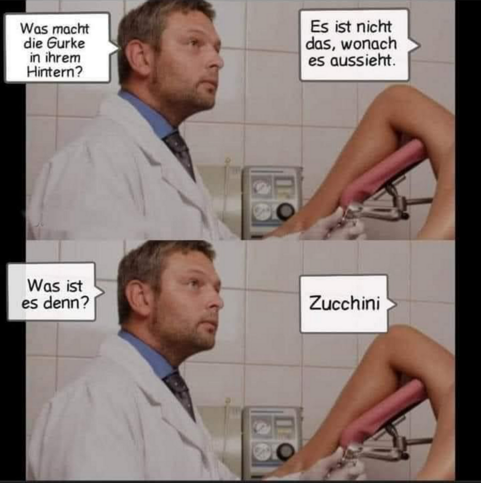 Weil die Zucchini ... jetzt hasse Schisse gekricht, ne?Und warum!?
