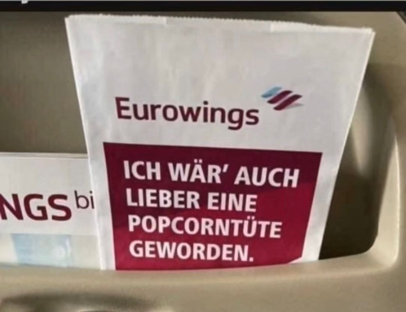 Das sind übrigens Mehrwegtüten: '87 im Hovercraft über den Ärmelkanal hatte mein Banknachbar Bedarf an der Tüte, die vor ihm in der Rückenlehne steckte. Die war aber schon voll
