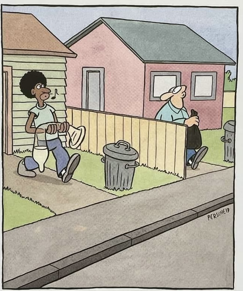 Aber schön trennen, Sportsfreund! Sonst gibbet Ärger mitm Nachbarn! Das Weiße gehört in die Braune Tonne!Ja,