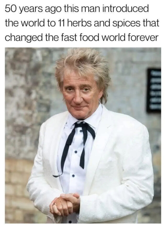 Na, der schaut aus wie Colonel Sanders, der KFC erfunden hat. Ist aber der Stewarts Rod....Welche Seiten muss man im Internet eigentlich besucht haben, um den Witz zu verstehen?
