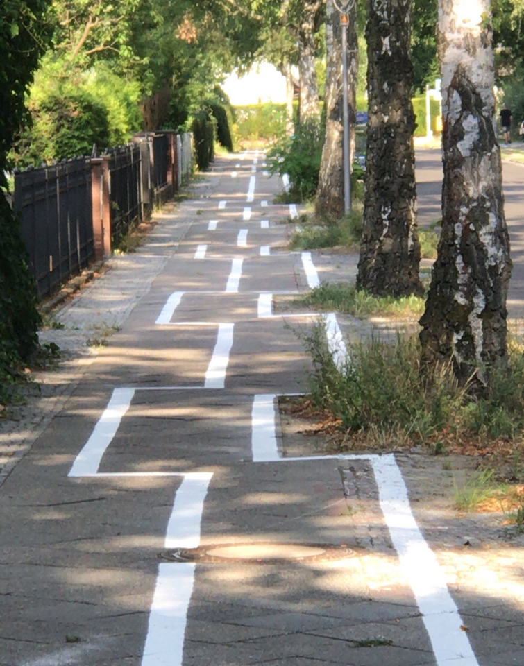 Naja, es war schon ziemlich bescheuert, einen derartigen Mist auf den Asphalt zu pinseln.winckel und die fokale im foto machen alles dramatischer als es ist.