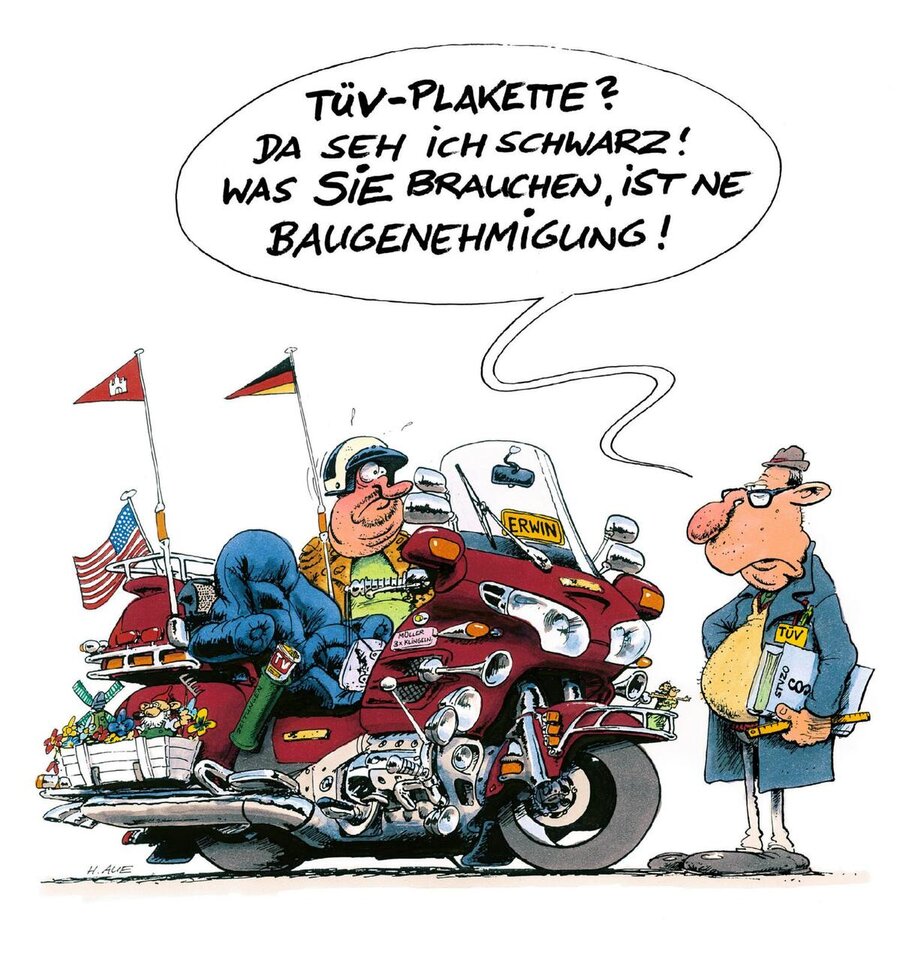 Als sie dann in Calais ihre Nortons im Bauch des Schiffes anschmissen, wäre ich fast taub geworden! Ein Erdbeben! So schnell war ich noch nie aus dem Schiff raus!