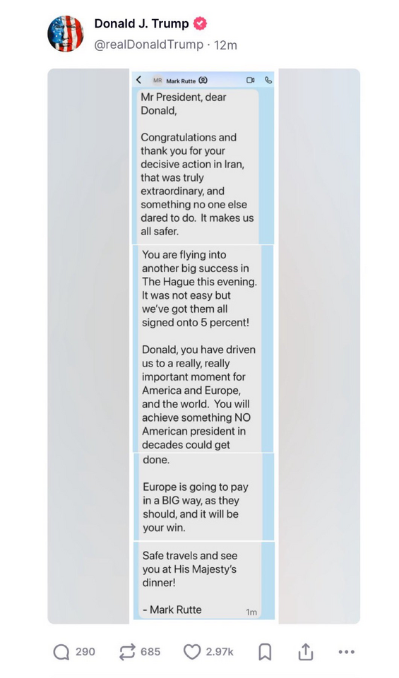 Ruttes Methode, diplomatisch tätig zu sein, wird oft als „Umarmung“ bezeichnet. Er streitet nicht mit Idioten, sondern gibt ihnen erst mal recht. Und dann schleicht er sich langsam mit seinen Themen an. Damit ist er über die Jahre ziemlich erfolgreich gewesen. Bei einem Egomanen wie Trump kann das hervorragend funktionieren.Heute schäme ich mich, ein Holländer zu sein!