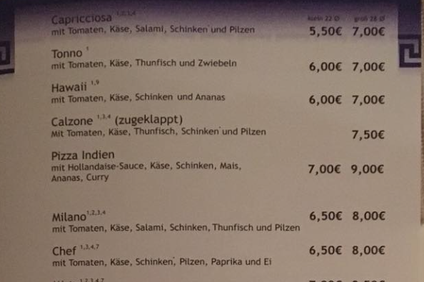 Da verkauft auf deutschem Boden ein Grieche eine "Pizza Indien" mit Sauce Hollandaise. Grandios!