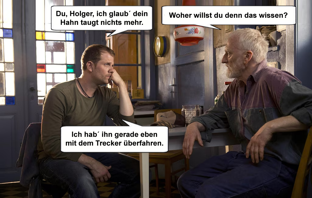 Sind die Hühner platt wie Teller, war der Trekker wieder schneller...