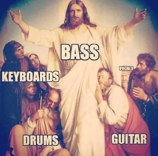 Manchmal muss man als Bassist einfach nachgeben, und sich mit seiner gottgleichen Rolle in der Band abfinden...@krausinger - so sollte man die Konstellation eurer Band im Proberaum gestalten: