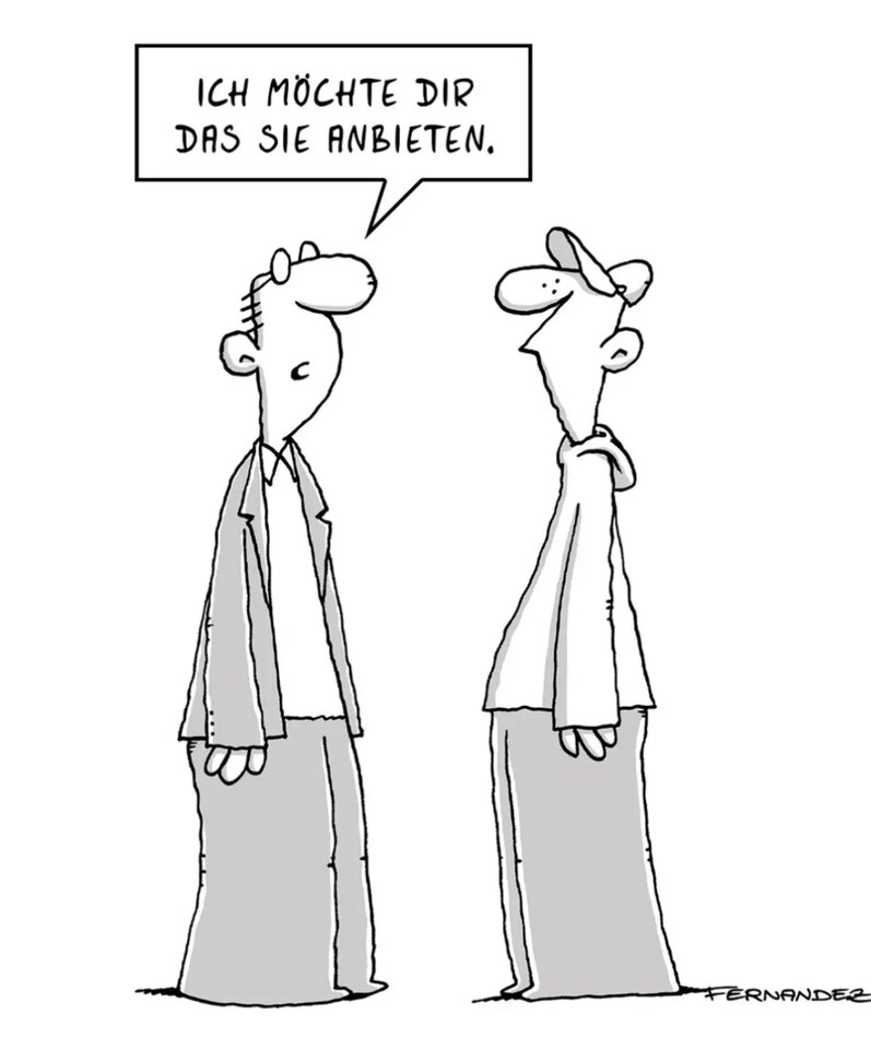 Die Garderobiere einer Berliner Bar hat ein gutes Gedächtnis. Sie gibt nur selten Zettel aus. Ein Gast erlaubt sich einen Scherz: „Sind Sie ganz sicher, dass das mein Mantel ist?“ „Dett nich“, sagt die Garderobiere bestimmt, „aba et is der Mantel, den Se mia jejeben ham!“