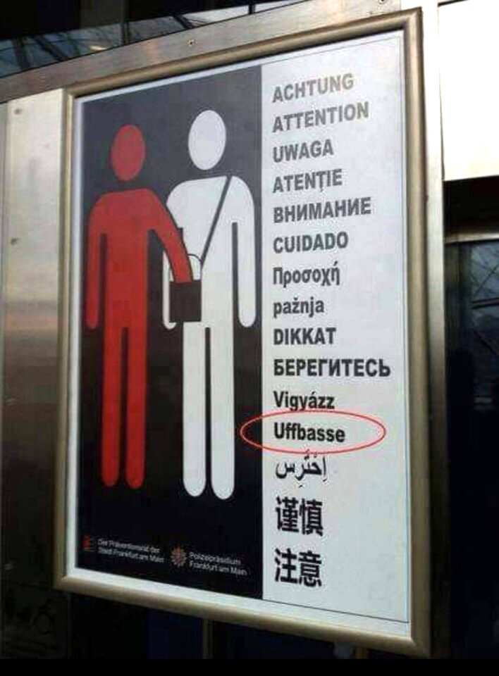 Warnhinweise auch auf Nordhessisch - sehr aufmerksam, wenngleich nicht ganz richtig: Uffbassen muss es heißen.
