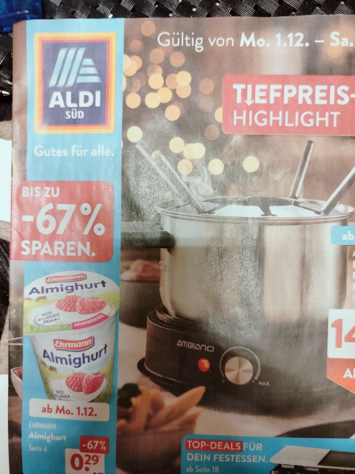 och geh, im Norden wird abgesahntJa. Deswegen steht im Aldiprospekt hier im Norden einfach und animationsfrei 'Bis zu 42% sparen'. Wir sind halt doch besser in Design, Logik und Rechnen, ha!