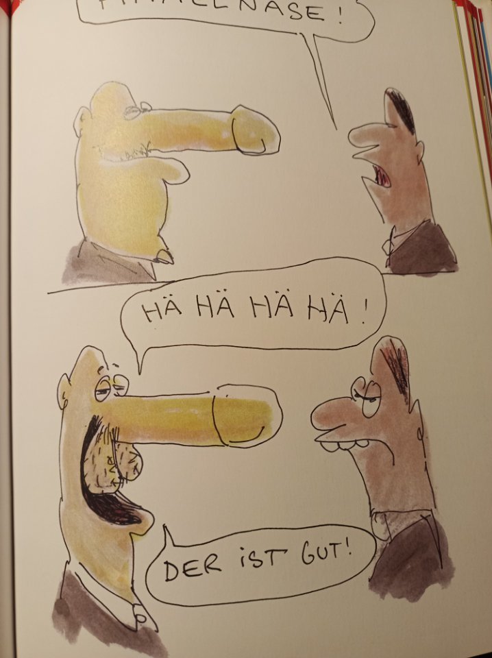 Pimmelnase ...Die erste Sprechblase kann man nicht lesen. Poste das bitte doch noch mal neu. Danke.