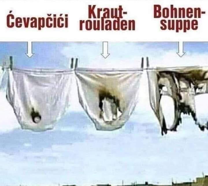 Edgar: Meine Ohren klingeln, Schweiß läuft in Bächen meine Stirn hinab, und ich kann nicht mehr klar sehen. Mein Furz hatte die Größenordnung eines Terroranschlags, 4 Leute hinter mir mussten vom Sanitäter behandelt werden. Die Köchin schien beleidigt zu sein, als ich ihr erklärte, dass ich von Ihrem Zeug einen Hirnschaden erlitten habe.