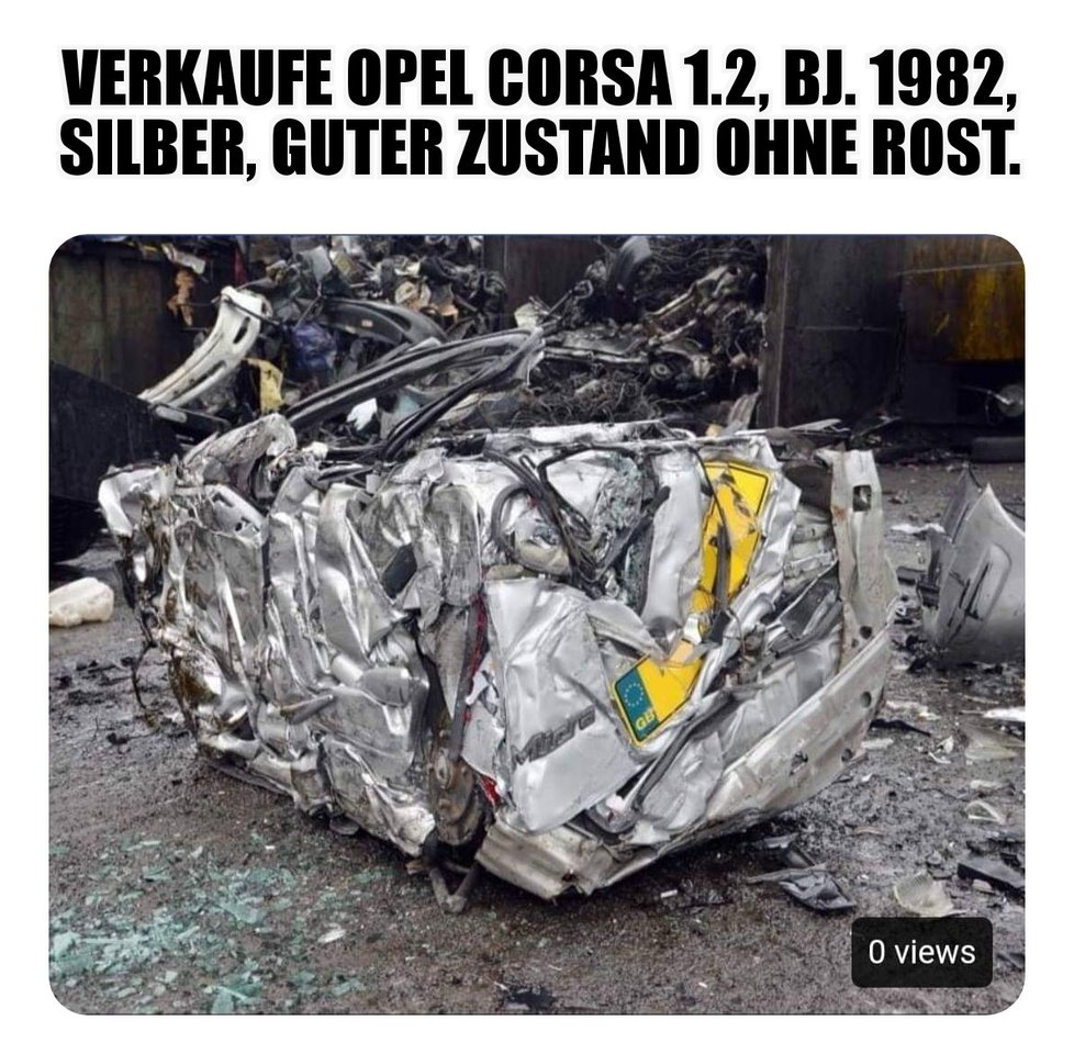 Beim Verkauf in Einzelteilen hätte diese Gurke, die defintiv nicht von 82 ist, 2 tsd Euro gebracht. Jacek und Ali hätten immerhin noch 1000 geboten. Im Recycling von BMW und Daimler werden Kisten geshreddert, die 10 tsd Euro und mehr bringen würden. Dieses Geld könnte an Armutsrentner oder Obdachlose gehen. Ich finde es einfach nur scheiße, was die machen.