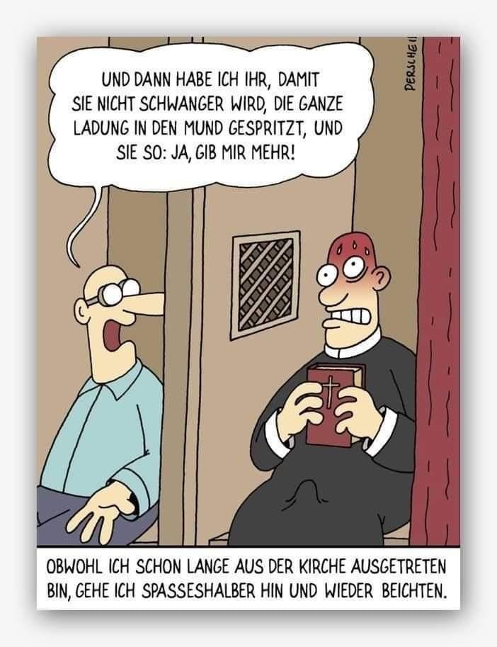 Du musst nicht den Pfaffen, sondern den Ministranten fragen...entschuldigung hochwürden, haben sie vielleicht ein taschentuch, ich hab grad ihren beichtstuhl vollgewichst..."