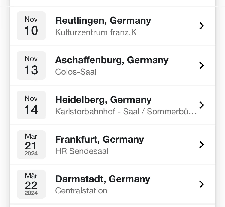 Gestern waren sie in der alten Seilerei in Frankfurt. Tolle Location, aber auch extrem fies für Leute, die mit dem Auto anreisen. Ein Konzert zu veranstalten, bei dem es keine Parkplätze gibt, ist ja schon kacke.