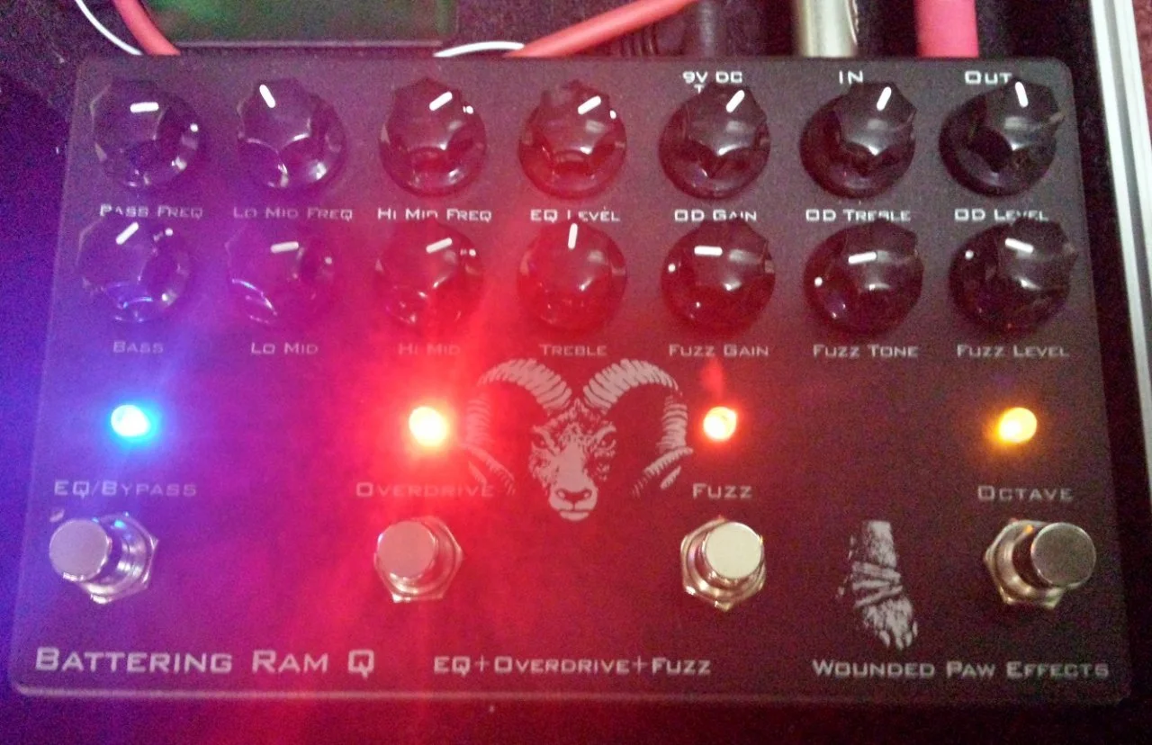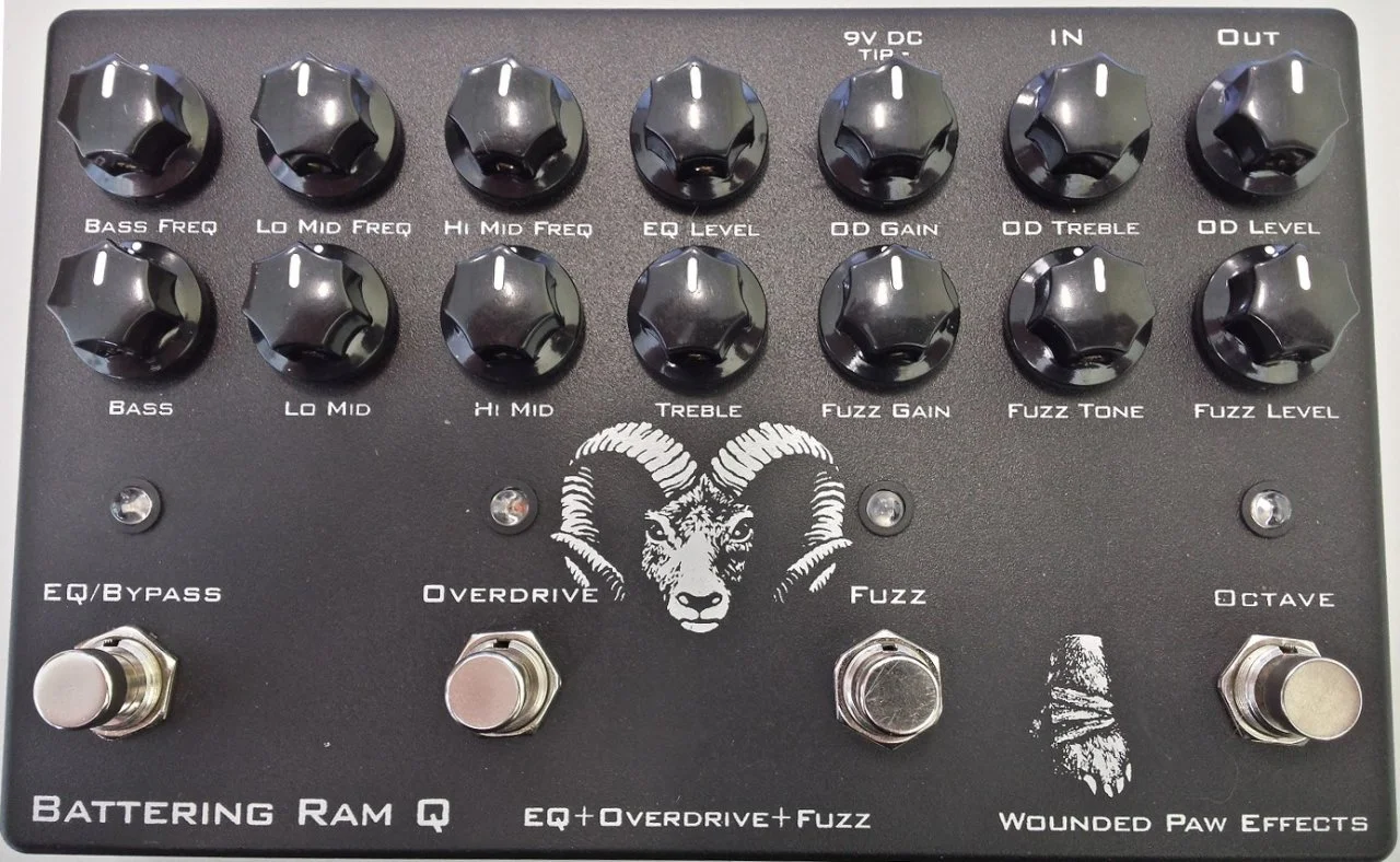 Zur "Battering Ram" Reihe gehören drei Pedale, hauptsächlich für Overdrive und Fuzz, die mit der Variante "Q" ihre Speerspitze hat: