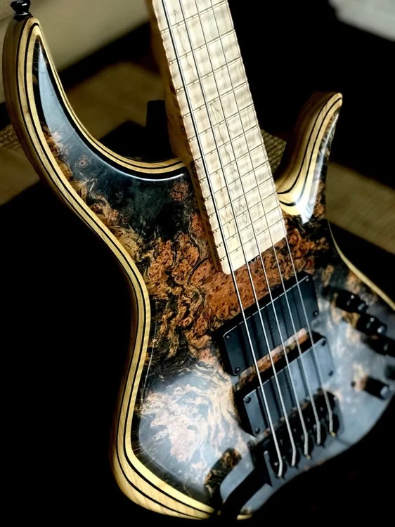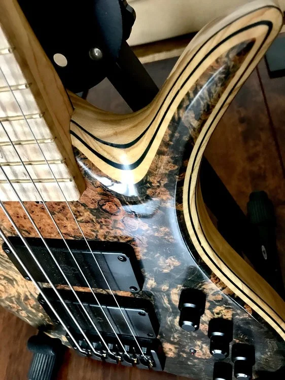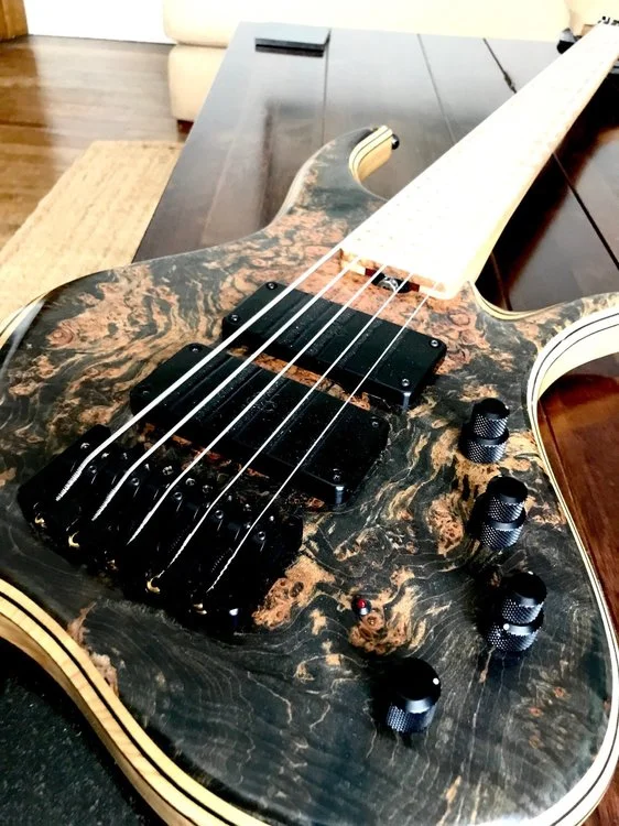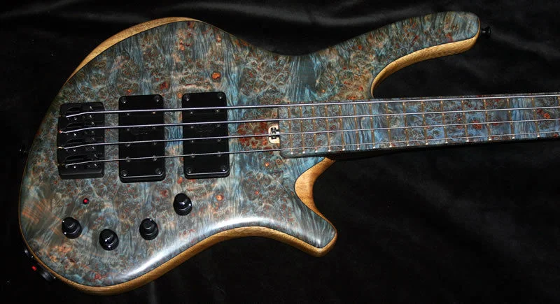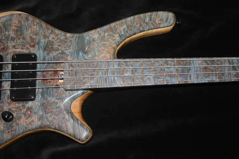 Nicht nur ist er ein äusserst talentierter Instrumentenbauer, er hat auch interessante Ansätze was die Elektronik anbelangt. Aehnlich wie Wal oder Alembic basieren seine Vorverstärker auf Hoch- und Tiefpassfiltern, mit denen man im Handumdrehen vom klaren, offenen Klang zum pochenden Motown-Bumms regeln kann. Was mich besonders fasziniert ist, dass diese Flexibilität nicht zu Lasten des natürlichen Klangs des Instrumentes geht. Eines steht für mich fest, die herkömmliche Vorverstärkung mit Dreiband-EQ hat für mich an Bedeutung verloren.