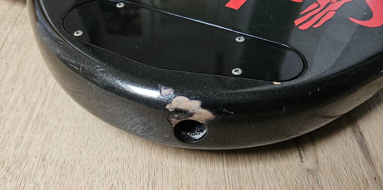 Hast Du das Pickguard schon mal abgeschraubt? Wie sieht es denn darunter so aus?Unfassbar, was manche Leute ihren Instrumenten antun.