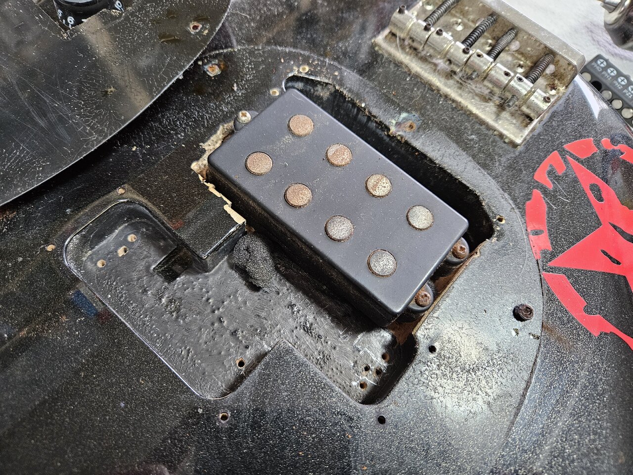 Dann kommen Schaller Security Pins dran, ein Aguilar 4P-HOT kommt rein, und die Elektronik wird neu aufgebaut.