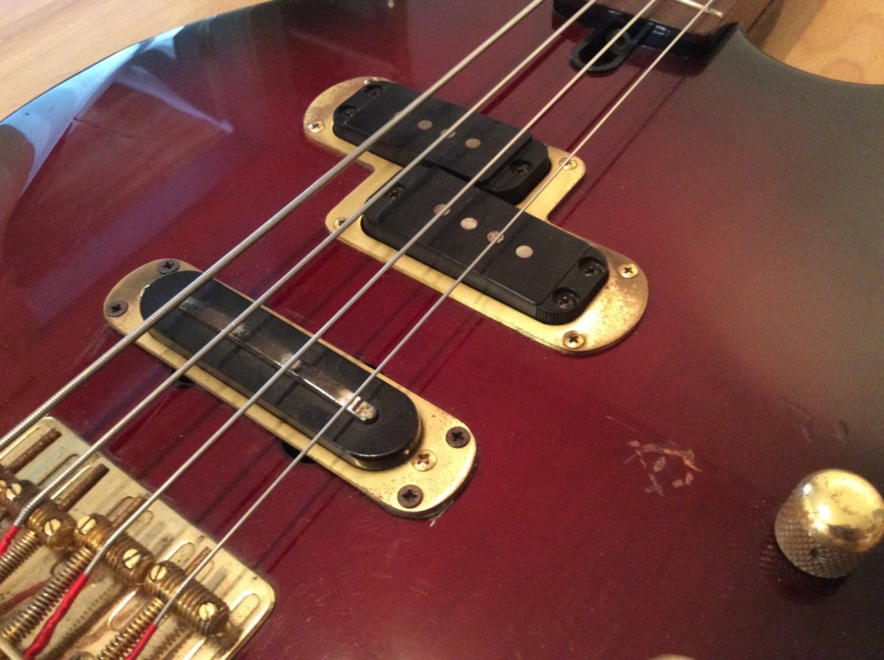 würde mal tippen, dass die saitenreiter ersetzt worden sind. sehen nach Fender reitern aus. aber das soll den bass gewiss nicht schmälern. saitenlage is wirklich recht hoch auf dem foto. wie sieht denn der hals aus: bogenspannung? also stark gekrümmt? dann musste an den halsstab ran. aber vorsichtig. und logischerweise auch erst mit neuen saiten drauf. dann die oktavreinheit, denn die sieht für mich definitiv nicht gegeben aus. (siehe G saite, sehr weit hinten....).