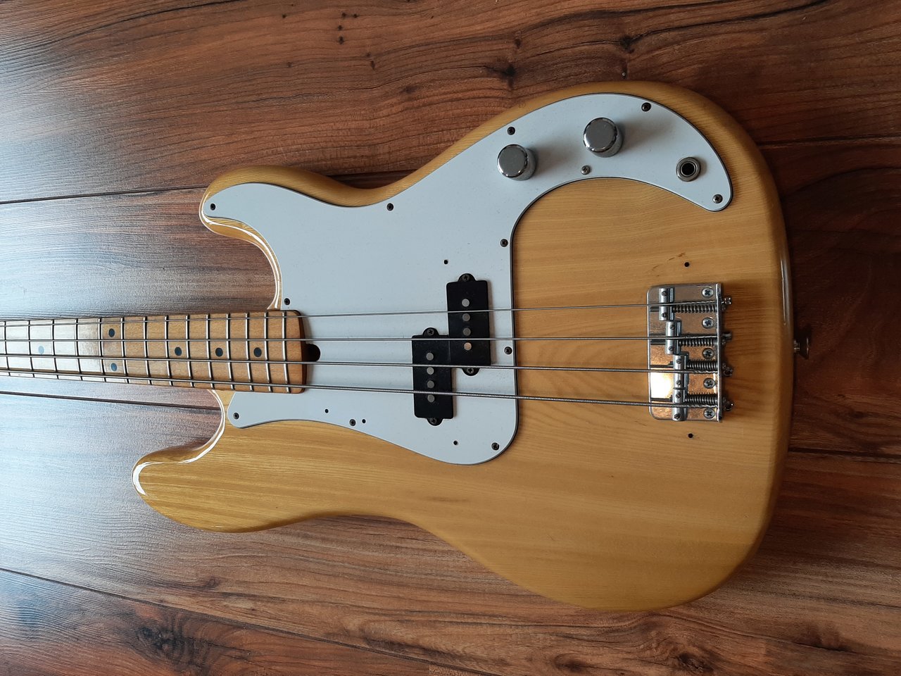 4,2 kg SenAsh-Maple. Alles Original. Was auch darauf angespannt werde, flatwound, rotosoundrounds, nickels. Immer Ton ! Befindet sich in Gouda - Niederlände, ist Richtung Gelb, ist immer noch....... frets, electronik, trussrod/neck, eine frische gelber Käse.