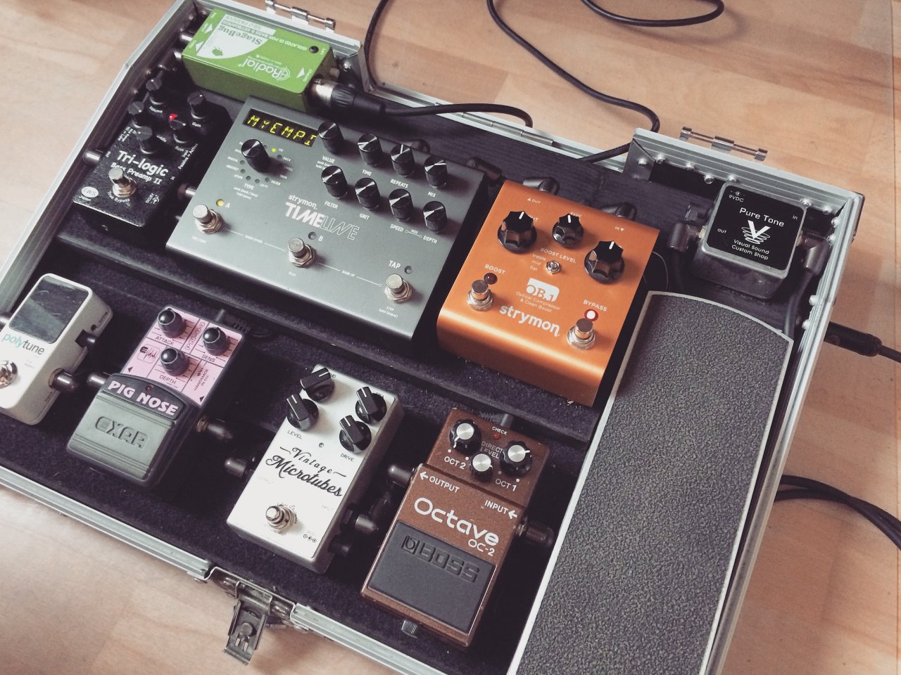 Habe das Board in der Zwischenzeit von Lava Cable auf die phantastischen D'Addario lötfreien Kabel umgestellt, den Source Audio EQ durch den Tri-Logic Preamp getauscht und seit heute das Board mit einer DI versehen.