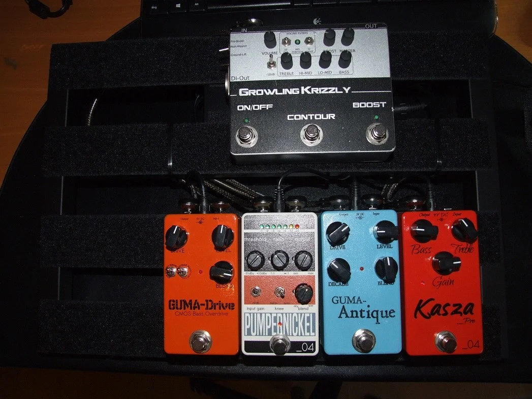 GUMA antique ==> Harley Benton Ultimate Drive ==> Pumpernickel Kompressor ==> Eden WTDI