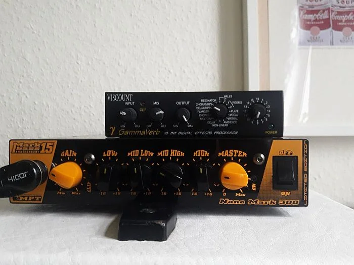 Rechts neben dem Tuner ist eine Art Preamp/leichter Overdrive von