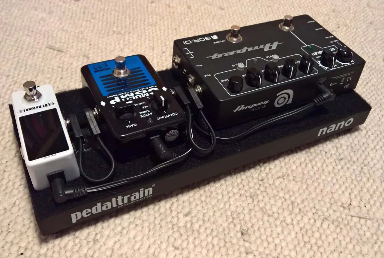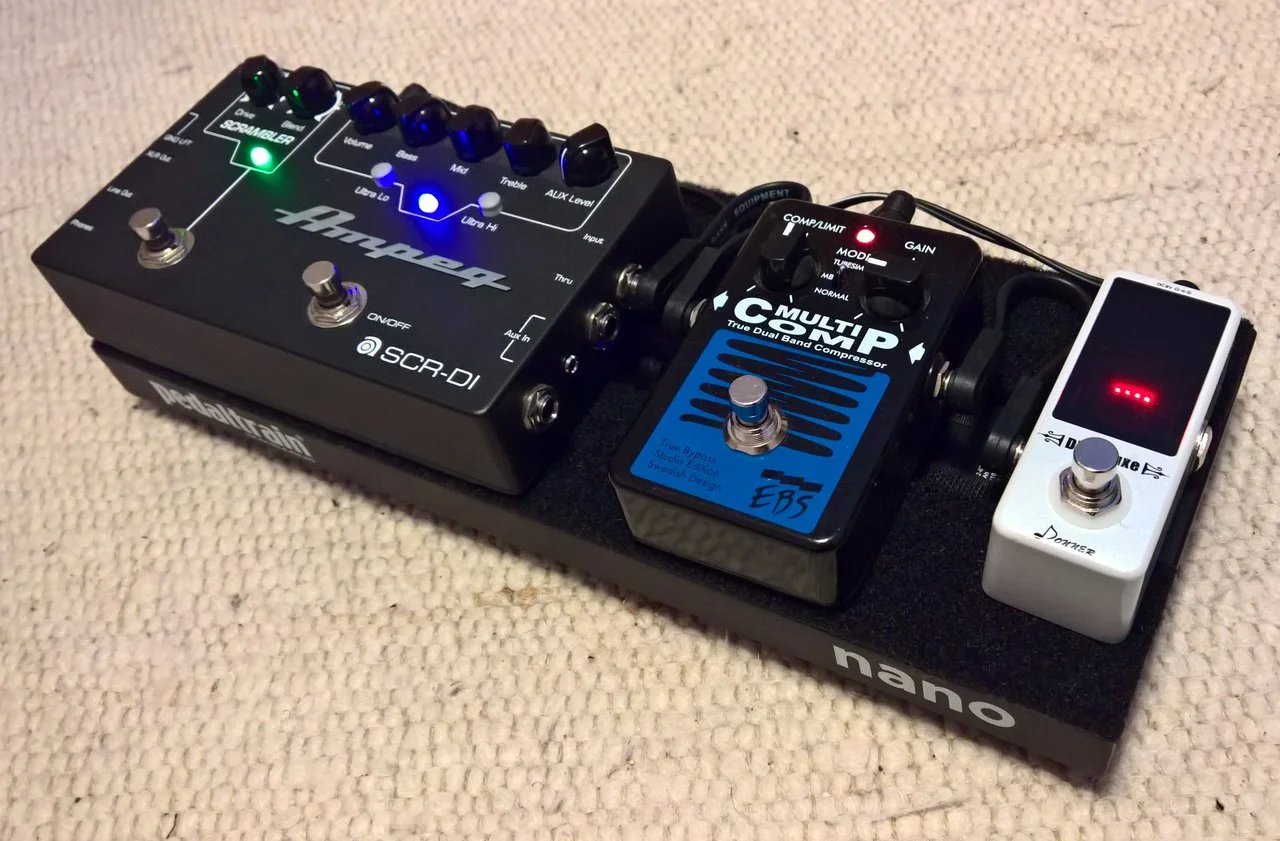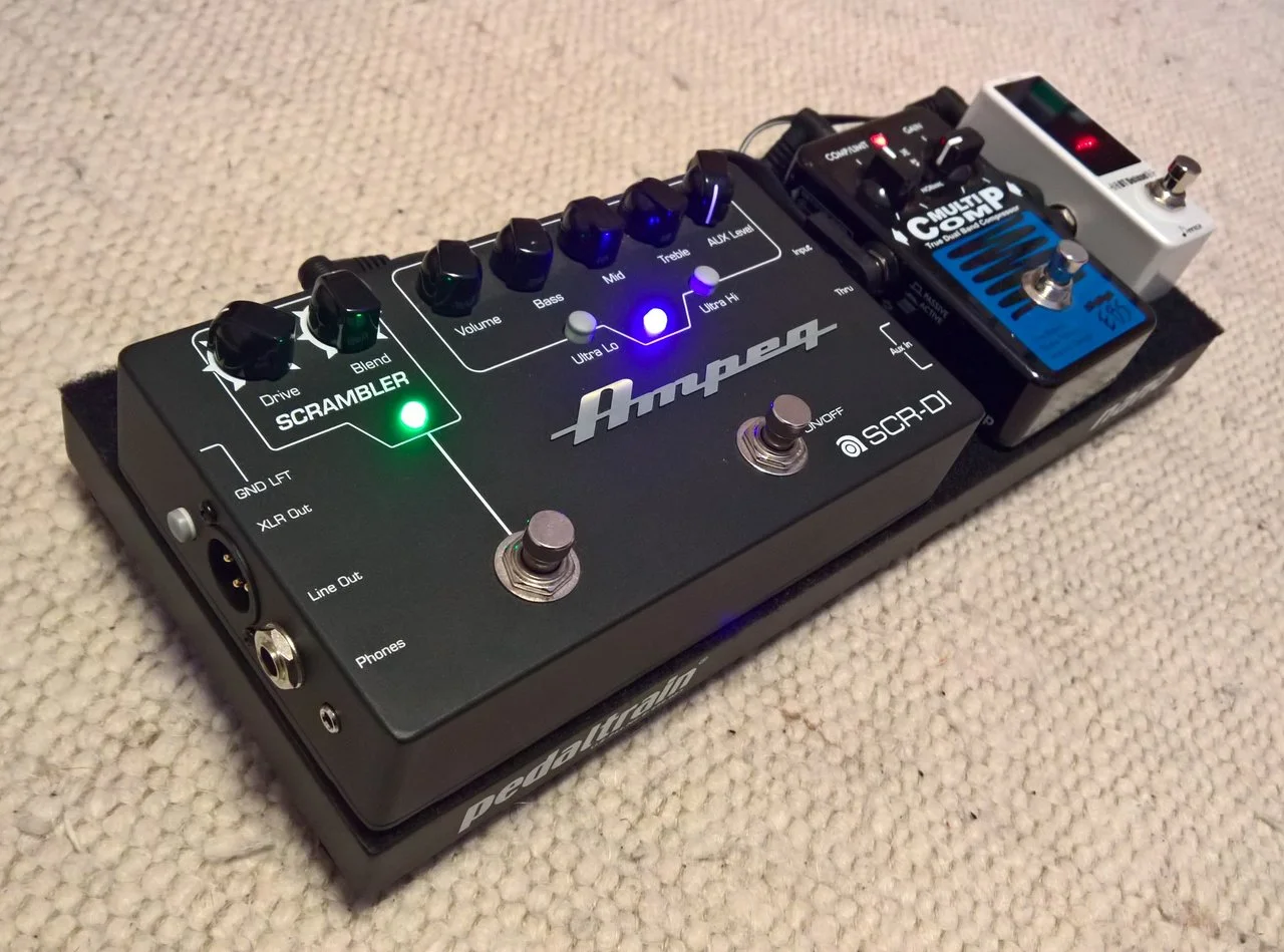 Ampeg bei meiner Einstellung, kann man nur schwer beschreiben. man muss sich erst etwas reinfuchsen, da der Treter auch schnell etwas harsch klingen kann, aber wenn man den Bogen raus hat ist er erstaunlich flexibel - vor allem mit dem 2Band EQ, der sich gegenseitig beeinflusst kann man den Charakter ordentlich verbiegen von eher mellow bis schon recht nadelig.