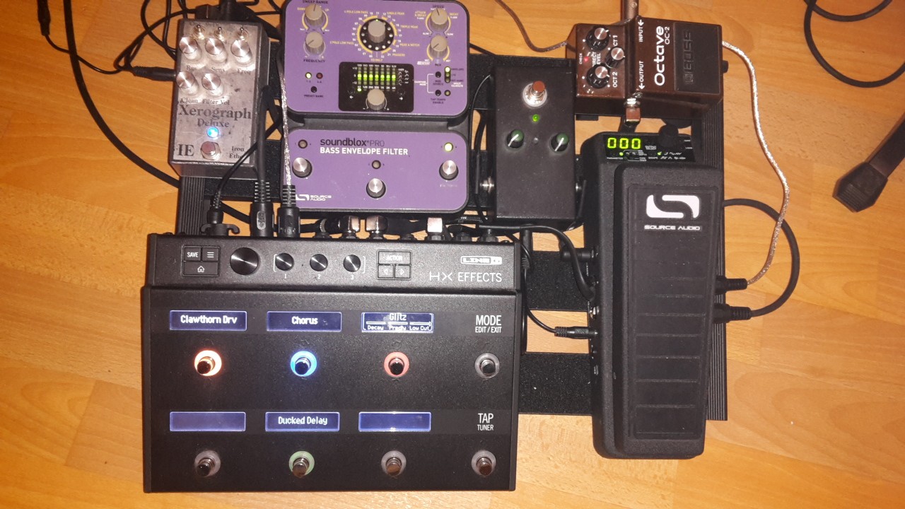 Ich hab auch den Broughton, bei mir aber genau umgekehrt: Zuerst Booster und Zerre, dann der Kompressor, und zum Schluss, vor Preamp und Amp, den HPF/LPF.