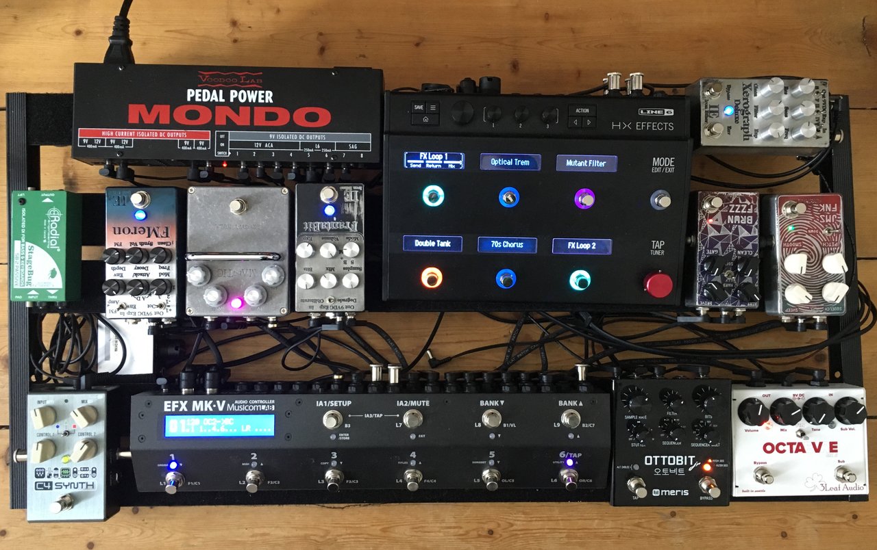 genau. Das ist ein Powerkon Anschluss. Im Untergeschoss ist eine Powerkonn Mehrfachdose vom großen T verbaut. Bei der Endstufe habe hab ich auch eine solche, von dort wird dann der Strom zum Board weitergeschleift.@Mr20Hz Schickes Board, inkl. Power Fuzz Wah.