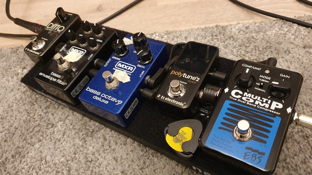 . unter dem Board ist meine Funke, sonst wäre das DC8 schon längst unter das Board gewandert. Tuner is noch drauf zum muten und weil ich die 5 Schalter von Stomp und Switch alle brauche. Einzige Veränderung ist vielleicht noch eins der Darkglass X Pedale oder eine andere X-Over Zerre. Damit spare ich dann je nach Preset 1-3 Blöcke.Bis ins Jahr 4000. Steht ja drauf!Anhang anzeigen 335291