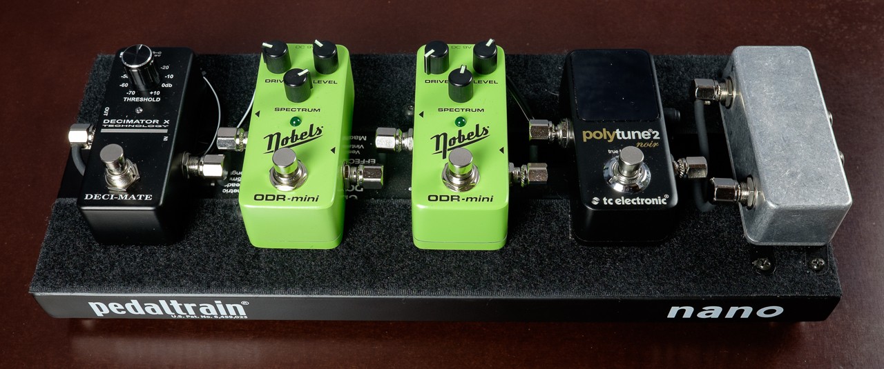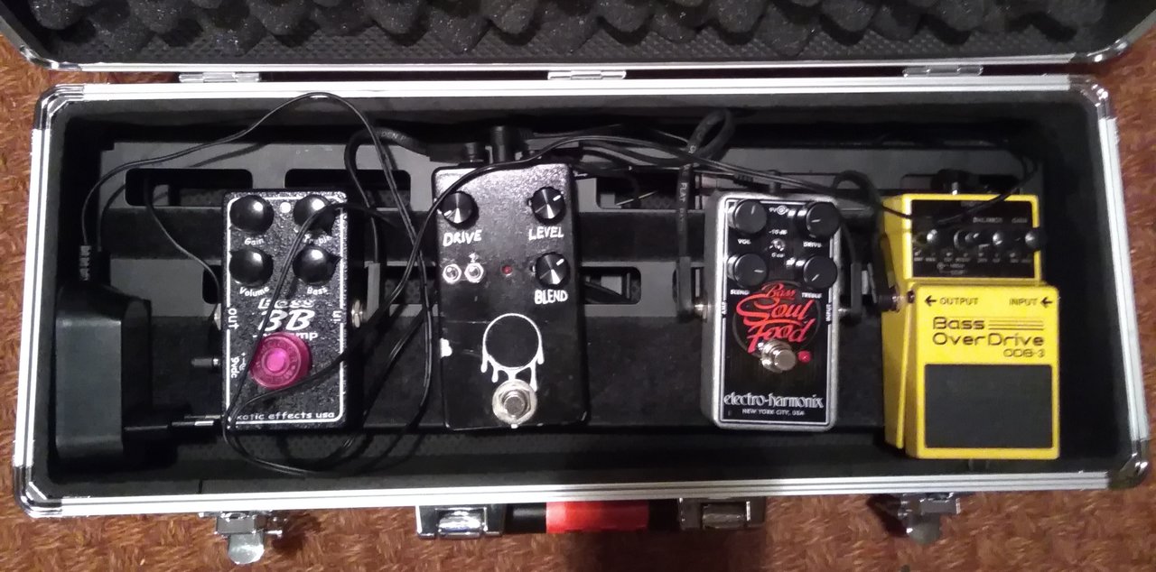 Süß die Nobels! Wofür die Anschlußbox, bzw. warum nicht direkt in den Tuner? Hast Du immer 2 Bässe angeschlossen?Mein Bass-Board. Momentan alles, was ich zum Glücklichsein brauche. Ich hoffe, dass es so kompakt bleibt - mein Gitarren-Board (drunter) hatte irgendwann nicht mehr wirklich Handtaschen-Format.