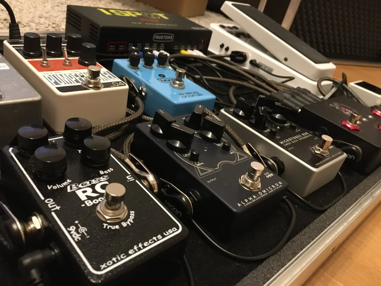 Ich hab das Cioks DC7, der hat 7 Ausgänge, ich hab aber aktuell 11 Geräte dran. An einem Ausgang ist ein 3fach-Daisy, an einem Anderen ein Y-Kabel und vom Stimmgerät geht auch nochmal Strom weg. Man muss halt ein bisschen ausprobieren, welche Geräte sich gegenseitig nicht stören und welche nicht gleichzeitig zu viel ziehen. Zusätzliche Isolatoren hab ich so nicht gebraucht. Jetzt hab ich mir noch die Cioks 4 Erweiterung gekauft, die kommt aber erst mit der geplanten Board-Vergrösserung zum Zuge.