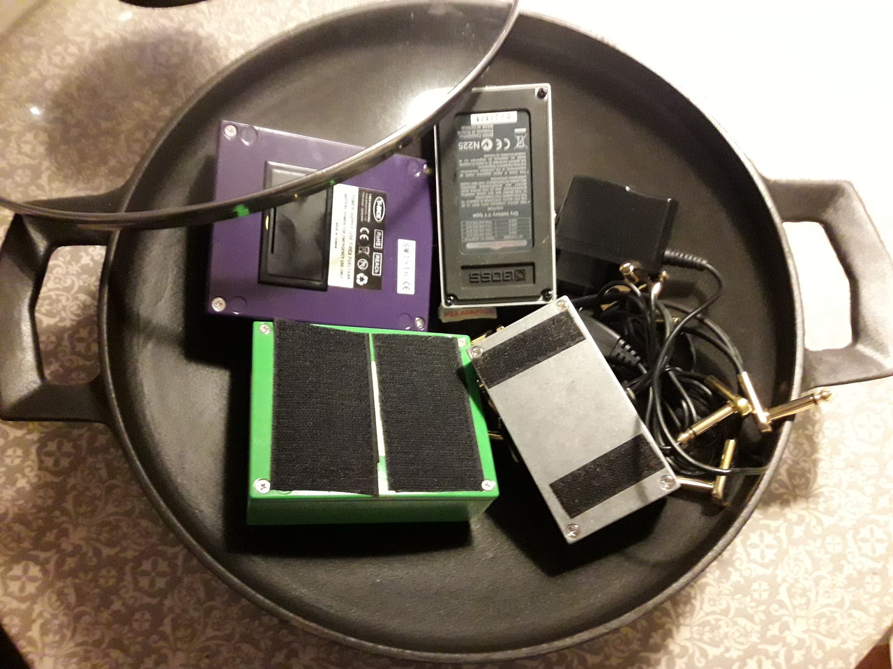 Sieht aus wie 1x Boss TU, 1x EHX ?, 2x T-Rex (davon 1x Moller)Moin, die hauptzutaten für ein kleines schmackhaftes exquisites zweitboardgericht sind schonmal da. es fehlen noch ein paar spezial zutaten,die mir der fachhandel noch zuschickt und ein einfaches pedalbackblechboard aus dem discounterbereich, dann gehts an die zubereitung....![]()